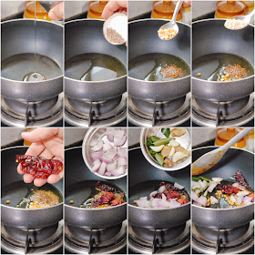pan with oil, crackle the mustard seeds and when they start to crackle add the