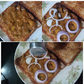 STEP 5 – Take some bread slices, spread 1-2 tablespoon paav bhaji over