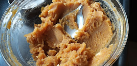 STEP 3 – Now add mashed dal to a microwave safe bowl, add jaggery and mix well.